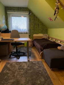 felső szinten: közlekedő társalkodósarokkal, 3 hálószoba, gardrób, háztartási helyiség, fürdőkádas-zuhanyzós fürdőszoba, külön wc