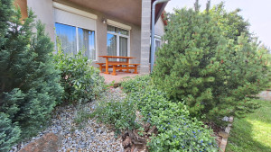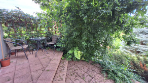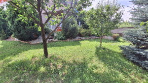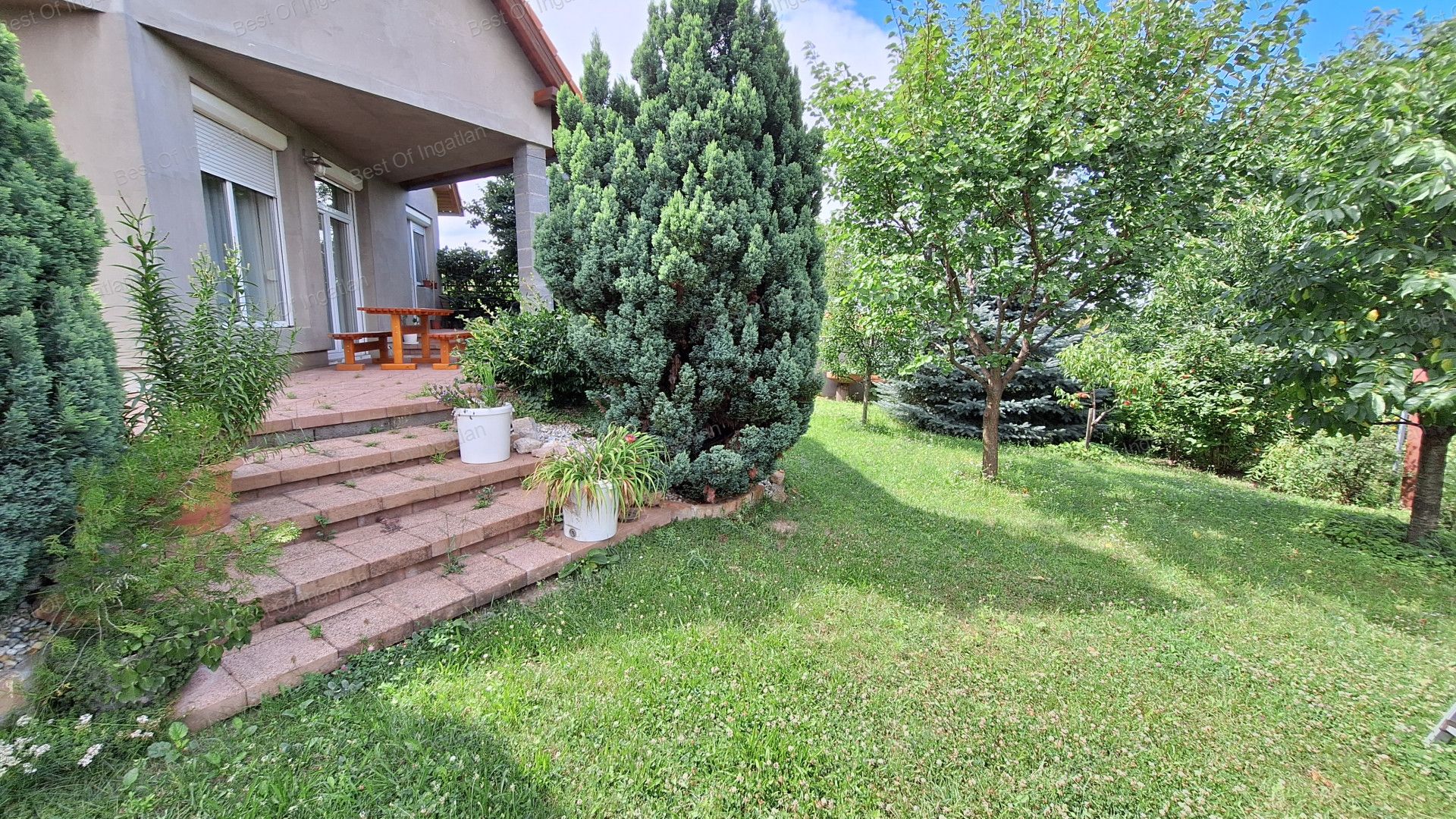 A gondozott kertben kerti csap kiállások, illetve a földbe épített szivattyús csapadékvíz gyűjtő akna nyújt segítséget az öntözésben.