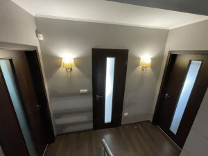 - emeleti szinten: közlekedő, nagy méretű hálószoba gardróbbal (alaprajz szerint 2 szoba), külön wc, fürdőkádas fürdőszoba, még egy szoba