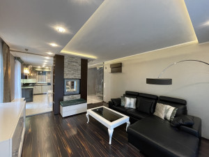 - nappali és az étkező között látványkandallót, üvegfalat és üvegajtót építettek be