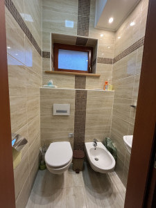 Lakótér: kb. 100 m2 (előszoba, konyha, kamra, étkező, 3 szoba, fürdőszoba, külön wc bidével, terasz).