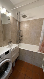 Fürdőkádas fürdőszobában egy mosógép is rendelkezésre áll.