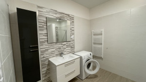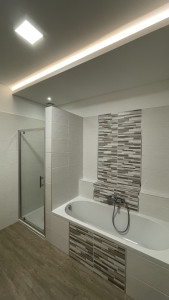 Fürdőben zuhanyzó, kád és törölközőszárítós radiátor található. A wc külön helységben kapott helyet.